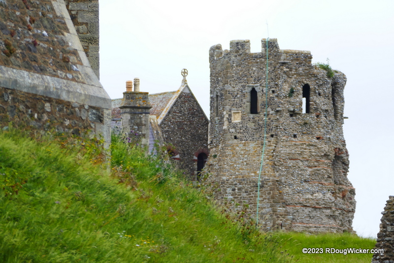 The castle is by far the largest in all the U.K. It is at least 50% larger than even Windsor. You will spend hours walking around this place. Below you can see that other St. Mary in Castro (left background) and the ruins of a Roman lighthouse (pharos) which was later repurposed as a belltower for the church (right background):