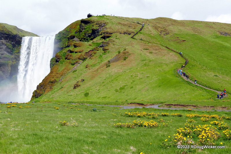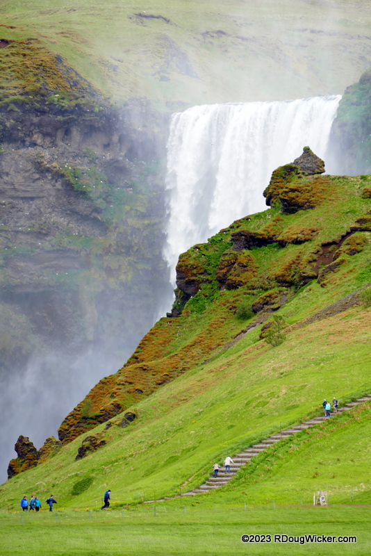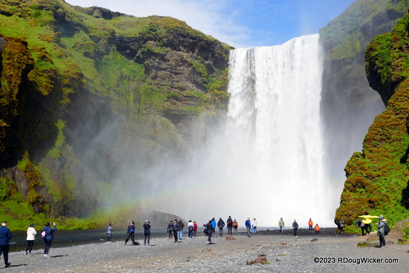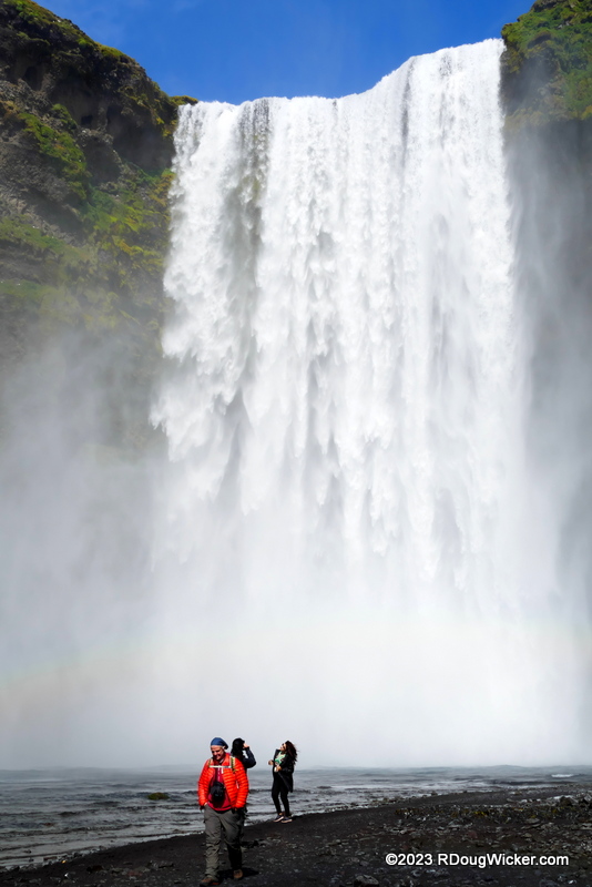 After the Lava Centre we reboarded the bus and continued east to our first waterfall, Skógafoss (Forest Waterfall).