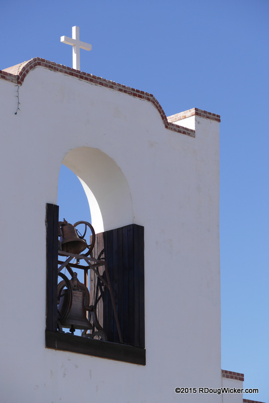 But I digress. Back to Presidio Chapel. Although this adobe structure dates back to only 1877, it stands on the site of the original San Elizario Spanish Mission from 1790. The presidio designation indicates that the original structure served two purposes — religious and military. Presidios were in fact military fortifications. The present day Presidio Chapel retains the name of that function, but today it’s all church built, and as you can see it was built in the Spanish Colonial style.
