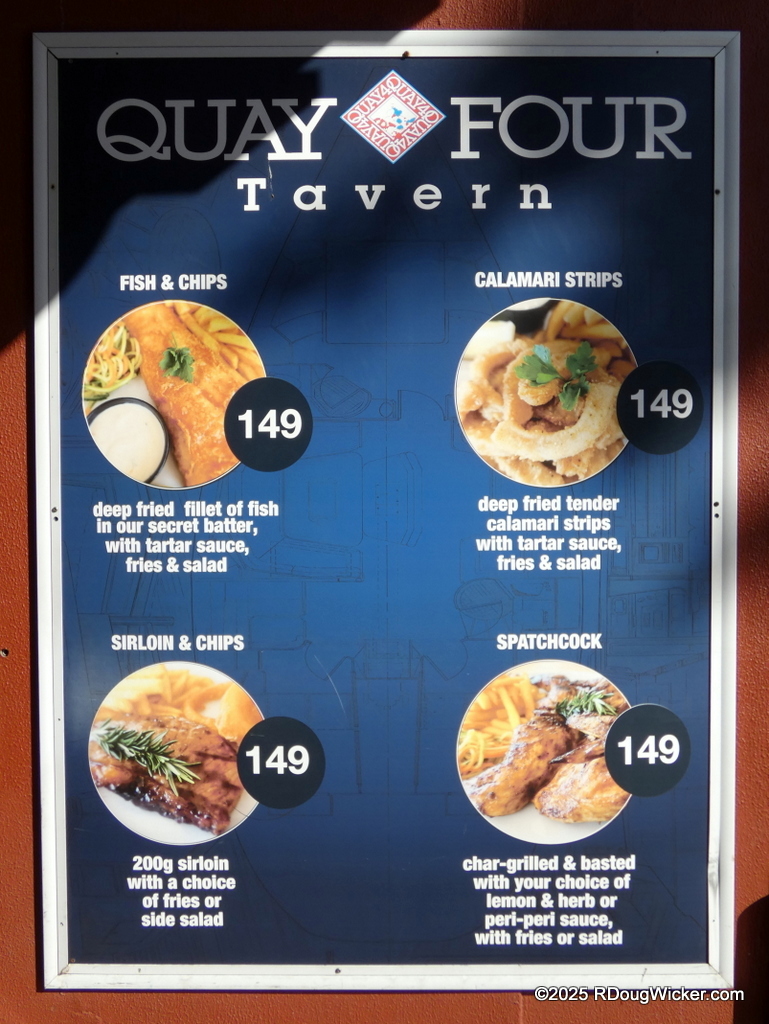 You’ll even pass by a poster showing off Quay 4’s daily specials. And whereas R149 (South African Rand) may sound steep, that works out to just over $9.00 USD: