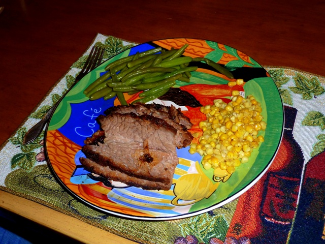 Smoked Brisket, Fried Okra (is there any other kind?), and Fresh Cornbread