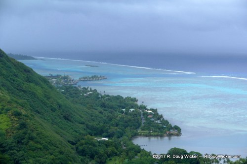 There is a lot to see and do on Mo’orea, so we spent the better part of the entire day touring the island. We, of course, were treated to great, high-vantage point shots of the towns, shoreline, and surrounding reefs, such as this:
