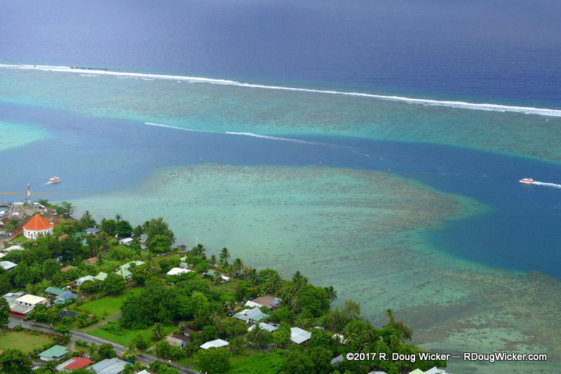 There is a lot to see and do on Mo’orea, so we spent the better part of the entire day touring the island. We, of course, were treated to great, high-vantage point shots of the towns, shoreline, and surrounding reefs, such as this: