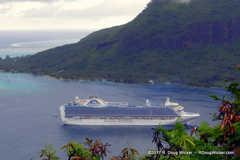 We left Bora Bora in the Crown Princess’ rearview mirror on Tuesday, November 3, with a scheduled departure time of 9:00 p.m. Why so late? Because we had less than 180 statute miles/155 nautical miles/290 kilometers to sail to our next destination. The next morning we reached our next port of call Mo’orea, French Polynesia, and, unlike Bora Bora, a former part of the Kingdom of Tahiti.