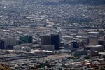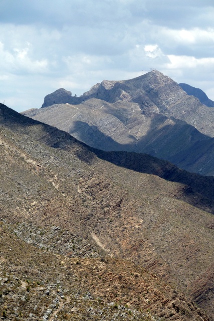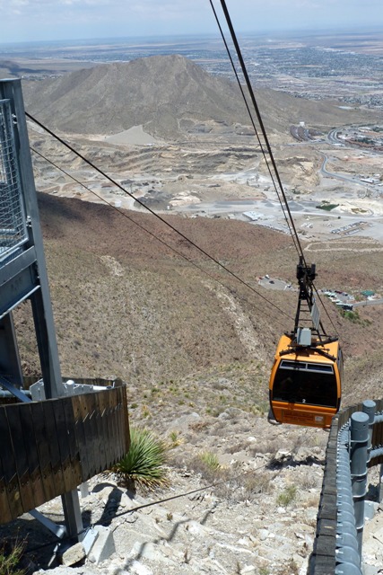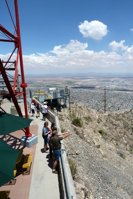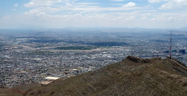 Don’t go away from the past two weeks’ worth of blog posts thinking the only things to see in the El Paso area are outside El Paso. Far from it. El Paso is a major city — 19th in the country in terms of population, and fifth largest in Texas. And it’s unique. It’s the only major U.S. city I know that is divided by a mountain chain. The Franklin Mountains divide West El Paso from the Northeast portion of town. Only a narrow strip of land between the south end of the Franklins and Juarez Mountains, through which the U.S.-Mexican border meanders, allow routine passage from west to east. This gap between the Franklins and the Juarez Mountains is the “Paso” (pass) in “El Paso”. The only other route is along Transmountain Road, which cuts through the Franklins and crests at an altitude of one mile/1.6 kilometers above sea level. That 5,280-foot/1,609-meter elevation puts you some 1,300 feet/400 meters above the surrounding desert, so from here you can get really fantastic views of two countries (U.S. and Mexico) and three states (Texas, New Mexico, and Chihuahua).