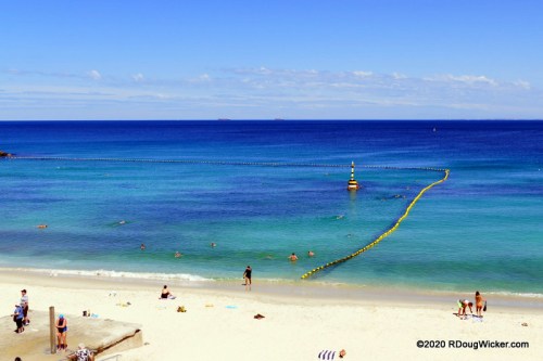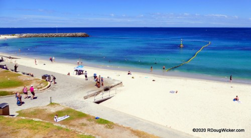 Beginning in North Fremantle and extending northward are a series of beautiful white sand beaches — Sand Tracks Beach, Coast Port Beach, Leighton Beach, Mosman Beach, an onward to today’s photo stop. Today we’re visiting Cottesloe Beach, in the Town of Cottesloe.
