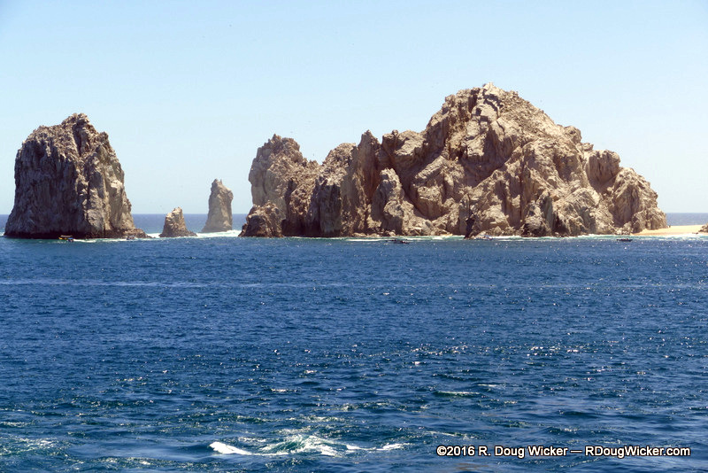 The Golden Princess made one more port before our long journey from Chile to Los Angeles would come to an end. That would be one of my favorite ports, Cabo San Lucas, at the very tip of the Baja Peninsula. We arrived on March 25, 2015, four days after our departure from Nicaragua. Cabo doesn’t have a harbor and dock suitable for a cruise ship, so once again we found ourselves anchored offshore and tendering into town after some spectacular views of Land’s End, Lovers Beach, and La Ultima Piedra de la Baja Peninsula, which translates to “The Last Stone of the Baja Peninsula”. Land’s End is the beach and large rock on the right side of the picture below, and the last rock is on the far left.