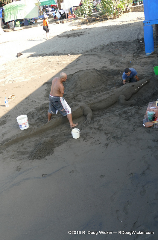 Stepping off the ship we saw two sand sculptors plying their trade for tips on the beach alongside where the Golden Princess docked. Their subject this day was the scaryAmerican crocodile. I’ll be showing you living examples over the upcoming series on this destination.