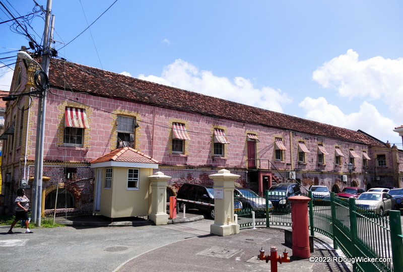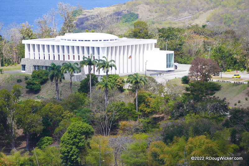 On the way back into St. George’s, our wonderful guide Garfield St. Louis detoured us to Richmond Hill for some great views from high above the capital city. We parked adjacent to Her Majesty’s Prison. Perched above us was Fort Frederick, which you see above. But the interesting features lay below us, such as this view of Grenada’s House of Parliament located east of St. George’s: