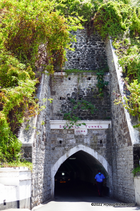 Sendall Tunnel was built for horse-drawn carriages, and it was quite the marvel back in 1894. It connects the Esplande (north) to the Carenage side. The tunnel is 340 feet/104 meters in length, and it is cramped. Vehicles travel one way, south-to-north, while pedestrians hug the west side of the tunnel.