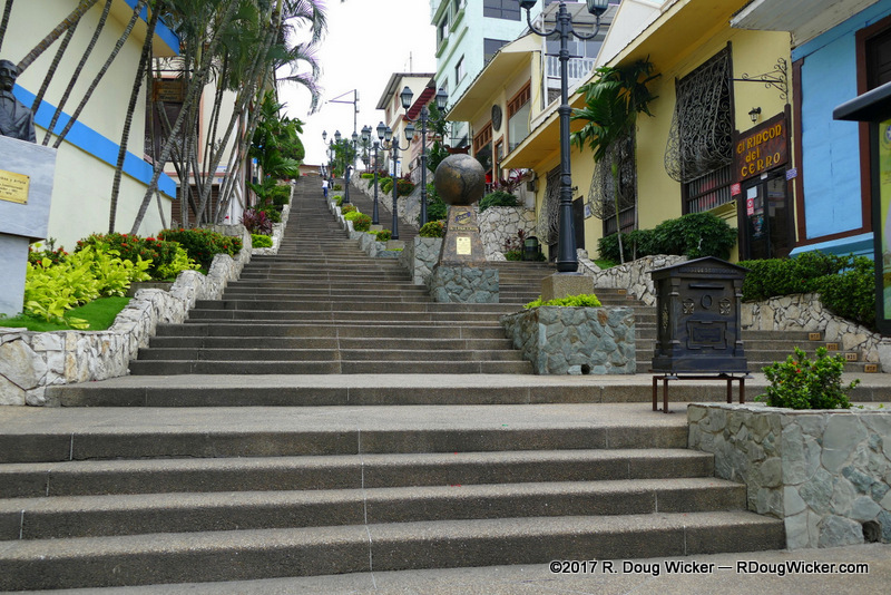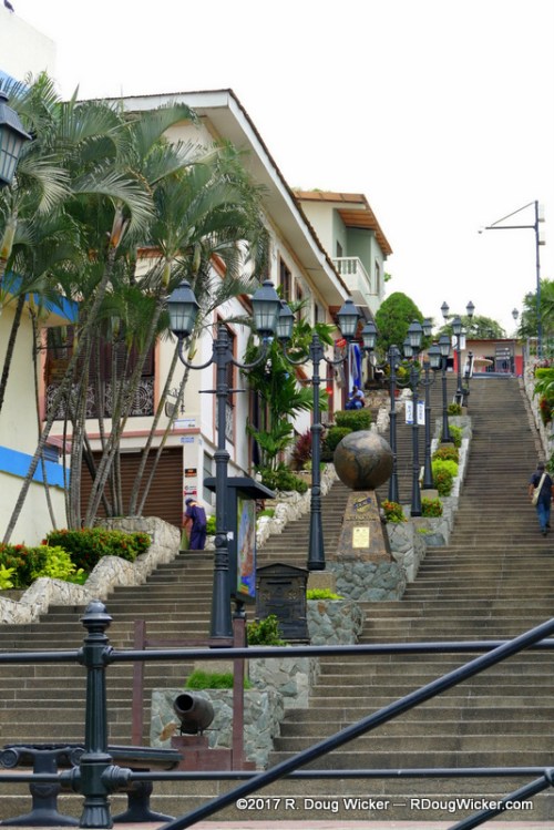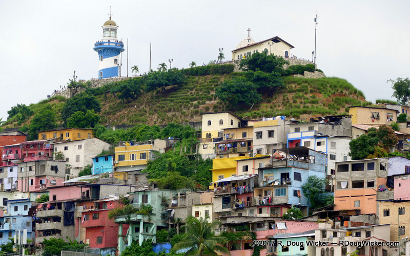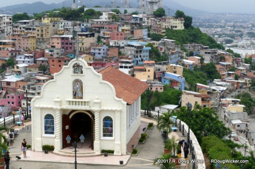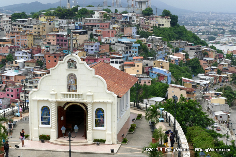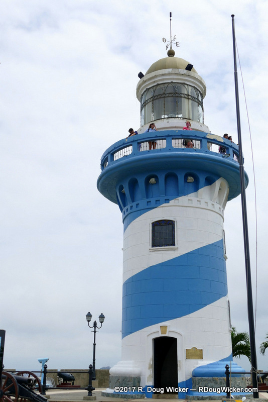 On our first day in Guayaquil, Ursula and I didn’t just hoof it around. We also took a Hop-on/Hop-off. While on that bus we passed this lighthouse atop a very tall hill: