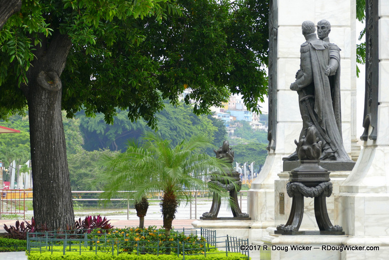 The Malecón lies along the bank of the Rio Guayas, which on this day was cluttered with flotsam washed downstream by heavy rains a few days before to the north:
