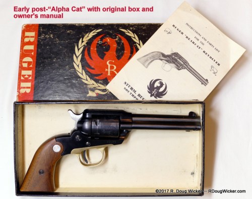So, while the original Ruger box and manual came with this 1964 Bearcat, they are now paired with the “Alpha Cat”.