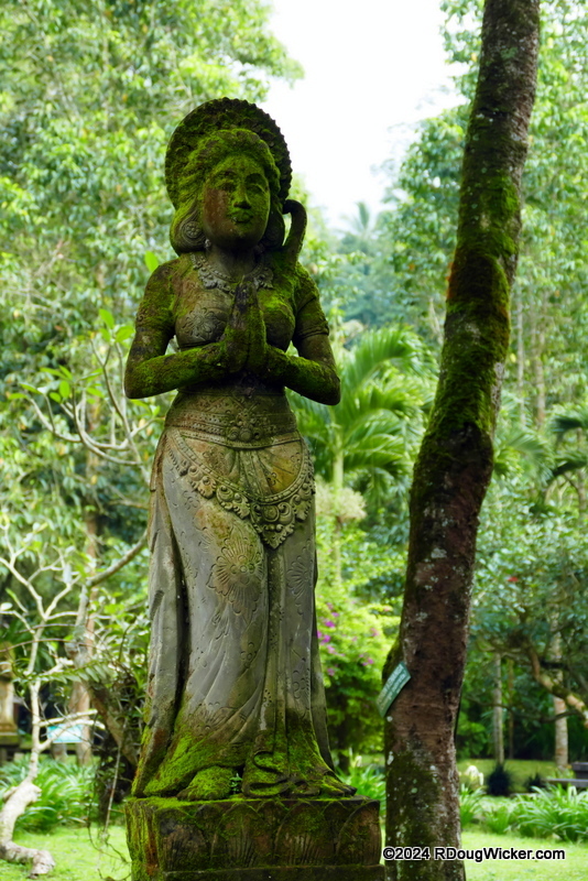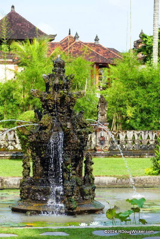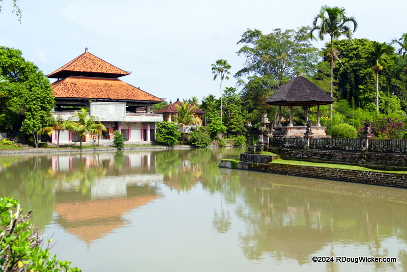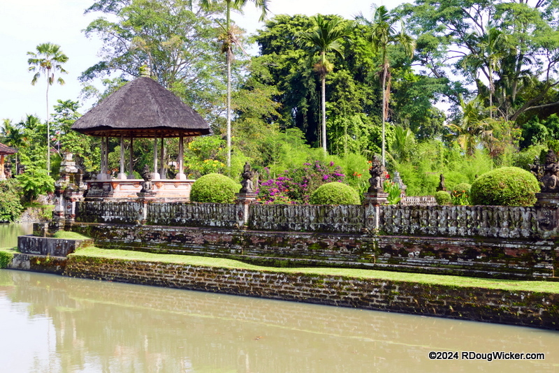 Monday’s article transported you to the sights of a Balinese Hindu water temple. Today I’m going to show you a Balinese Hindu temple containing a garden. Pura Taman Ayun, which translates to Temple (pura) of the Beautiful Garden, is the second largest such site in Bali. It covers 17 acres/6.9 hectares. Because there is so much to see here, I’ll be covering it further in next week’s Monday and Wednesday articles. We’ll start today with an image of the water feature here. This large body of water is part of the local subak (irrigation system used to supply water for rice paddies).