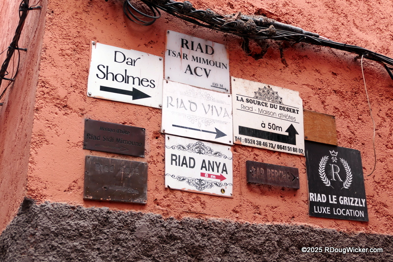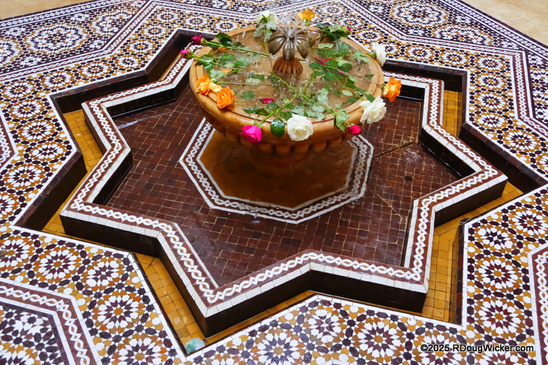 One of the things I’m just a tad bit wary of is eating in a location in which the tap water is not safe to drink. We once had an unbelievably bad experience the restaurant at a well-known, highly respected American chain hotel back in 1984 in Cairo. The culprit? The salad bar. Why? Because the produce was rinsed in local tap water. Three of the four of us had severe intestinal distress shortly thereafter. As we’d received the same tap water warning for Marrakech, I was a bit reluctant to eat out on the economy. Fortunately, we didn’t have to. Riad Viva supplied us nightly with an ever-changing daily set menu of traditional Moroccan food. We kept going back each and every night. But be forewarned. You must pay in advance, with cash, at least several hours beforehand, and you won’t really know what the courses are until after you are seated.