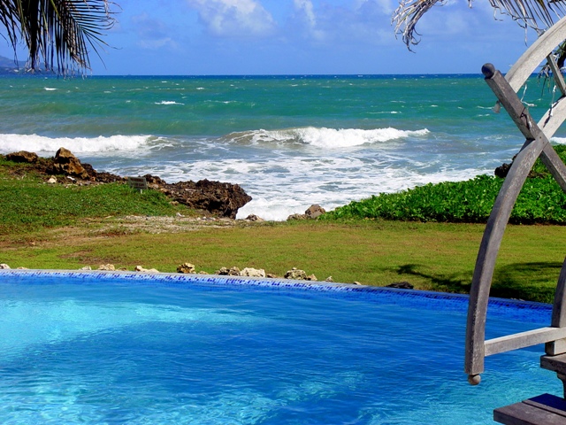 Equally famous to the main house structure were also Mr. Fleming’s personal beach and lagoon, where he spent many hours of the day snorkeling and entertaining guests such as his neighbor Noel Coward.  Nearby you can still explore his personal cave.  GoldenEye’s detached garage still stands as well, but has been converted into a entertainment room for the guests staying in the five-bedroom main house.  The house still horseshoes around the small pond which so intrigued Mr. Fleming.  Inside the villa most of the furniture is post-Fleming with one very important exception.  Nestled against the back wall of the main living room is the desk at which Ian Fleming toiled to produce his literary works.