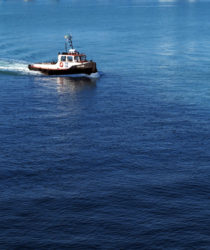 Most of our time in Civitivecchia involved a brief foray onto the main streets and a stop at a local WiFi-connected café to allow us to cruise the ‘net on our iPads. Back on the ship I captured a couple of pictures of passing boats: