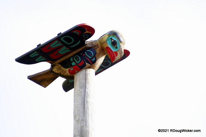 As you depart Creek Street on the west side, cross over the foot bridge, and make your way to the inappropriately named Dock Street (no where near the docks), look to your left for the Chief Johnson Totem Pole. Topping that pole is a neat stylized eagle waiting to say, “Cheese,” as you prepare to snap his photo: