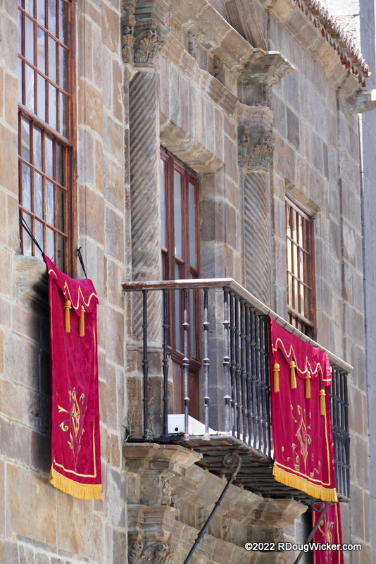 Above La Placita Restaurante, two stories up, is a wonderful florally decorated balcony: