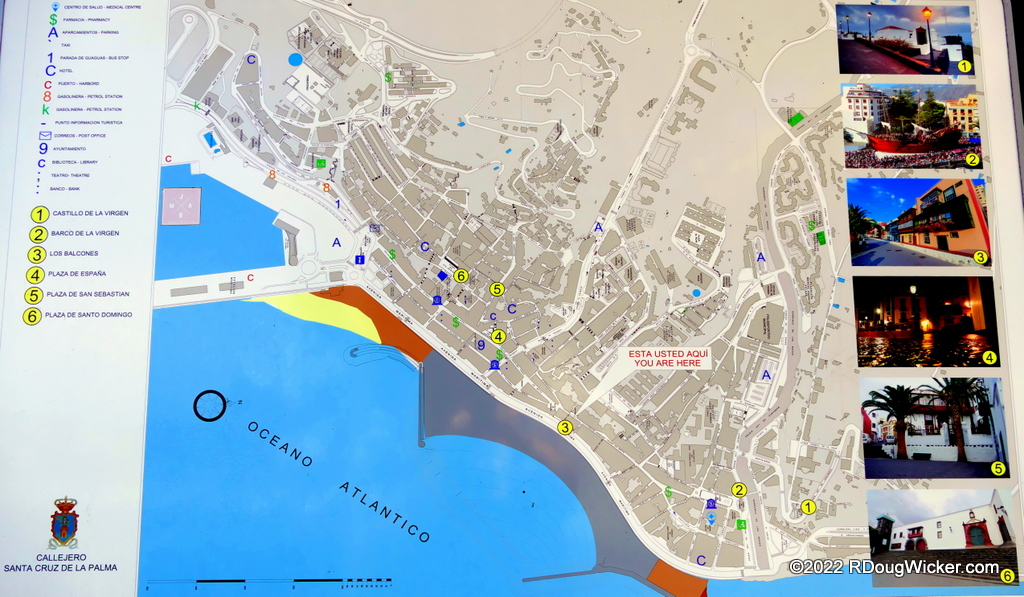 But if you look below that you’ll find a sign with an arrow pointing to the left. That sign will say Balcones Tipicos, which translates to “Typical Balconies.” So, what constitutes a “typical” balcony here in Santa Cruz de La Palma? Let’s follow the directions over to Avenida Maritima, hang a left there, and head on over to Stop #3 on the map you see below: