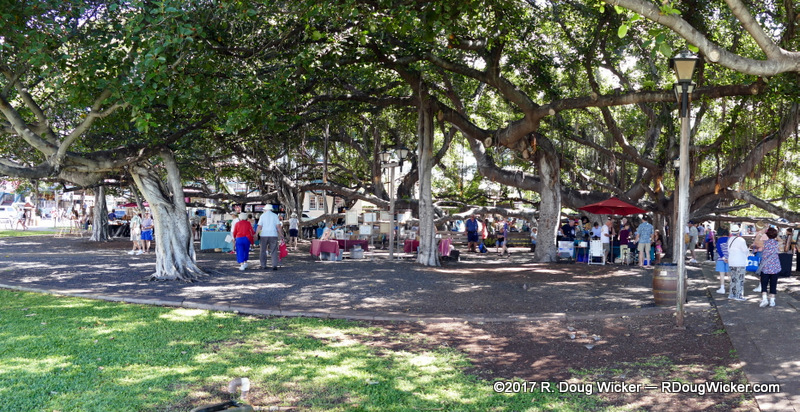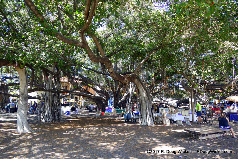 One of the first sights you’ll see leaving the marina is Lahaina Banyan Court Park, home of the largest banyan tree in Hawai’i. This particular tree was planted back in 1873, and at the time it was only eight feet/2.4 meters tall. Today it reaches 60 feet/18 meters and covers .66 acres/.27 hectares. It’s main branches are supported by one main trunk, 16 major trunks, and many aerial prop roots. Very impressive.