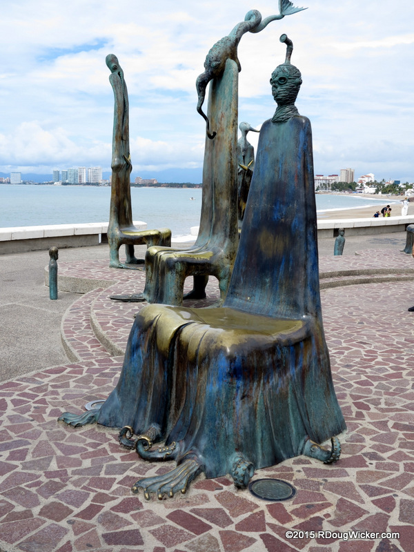 Our former favorite lunch spot in Puerto Vallarta is no more. It was located on a second floor overlooking the Malecón, beach, and statues. Unfortunately, although we found the stairwell entrance, the establishment was no longer there.