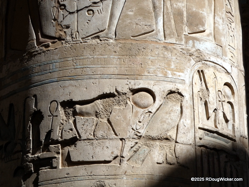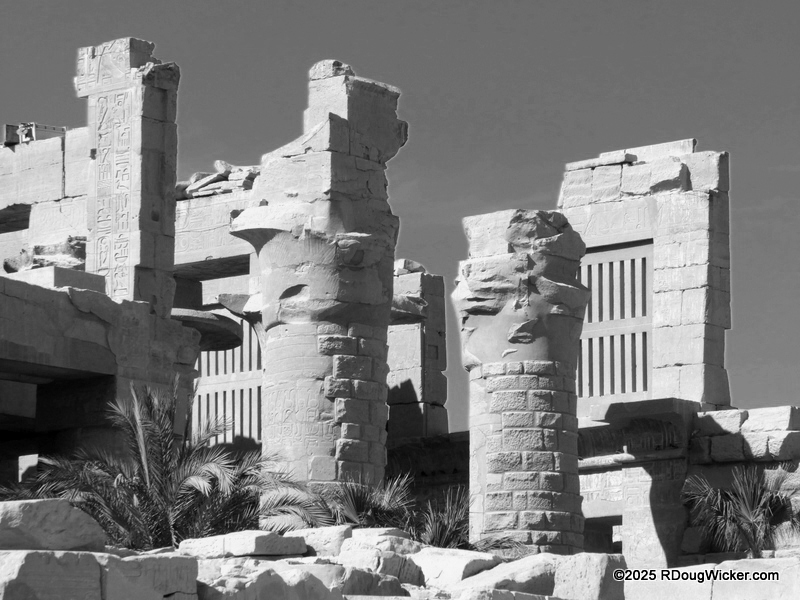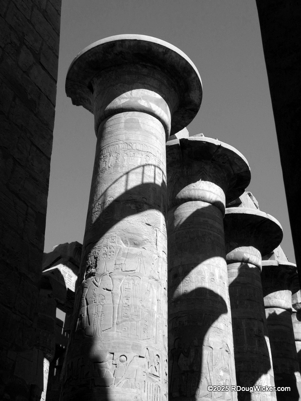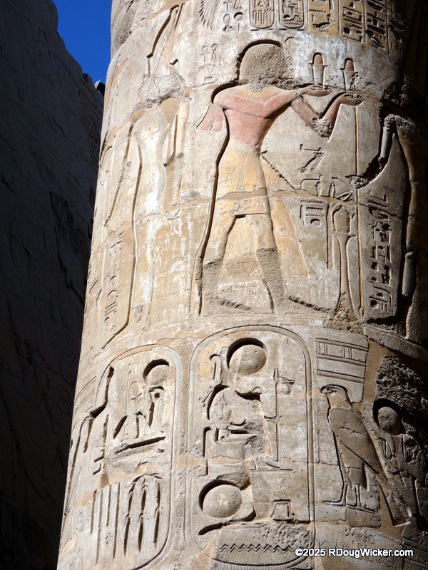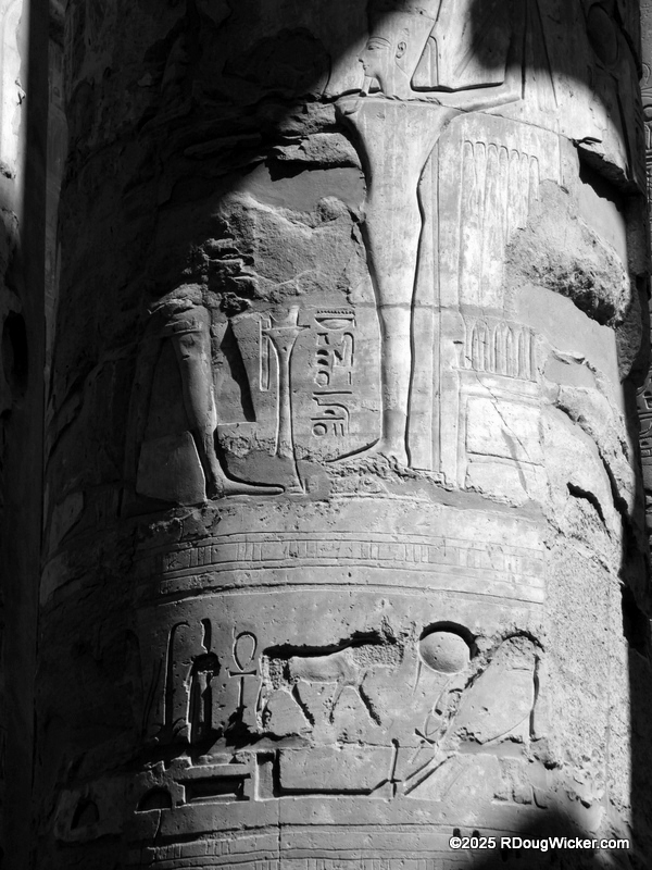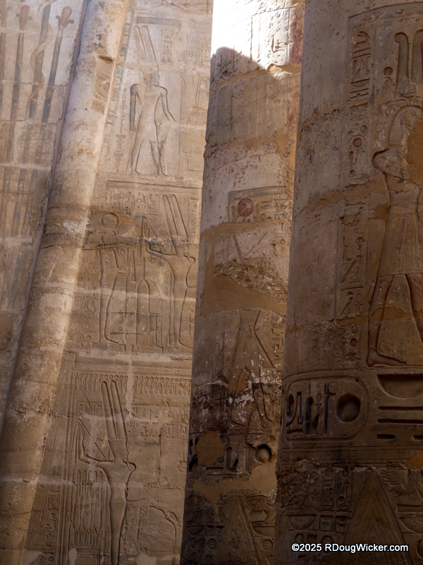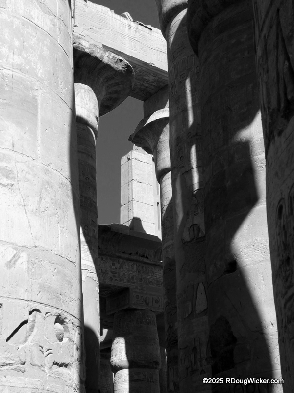 One of the things I most enjoyed about photographing Karnak was the way light and shadow played across the numerous columns, highlighting hieroglyphics and bas reliefs. Indeed, I anticipate that many of these photographs will convert very nicely into black & white, especially with some judicial use of color filtering before the conversion. And in case you’re wondering what I mean by that, here are some articles I wrote on the subject: Black & White Photography—It’s All in the Color!, Black & White Filtering After the Picture is Taken (and with FREE Software!) (alas, that “free software” is no longer supported by Google, but I’m sure you can find a substitute), and Color Filtering in Black & White Revisited. But enough with the photo tips for today. Let’s get back to Karnak.