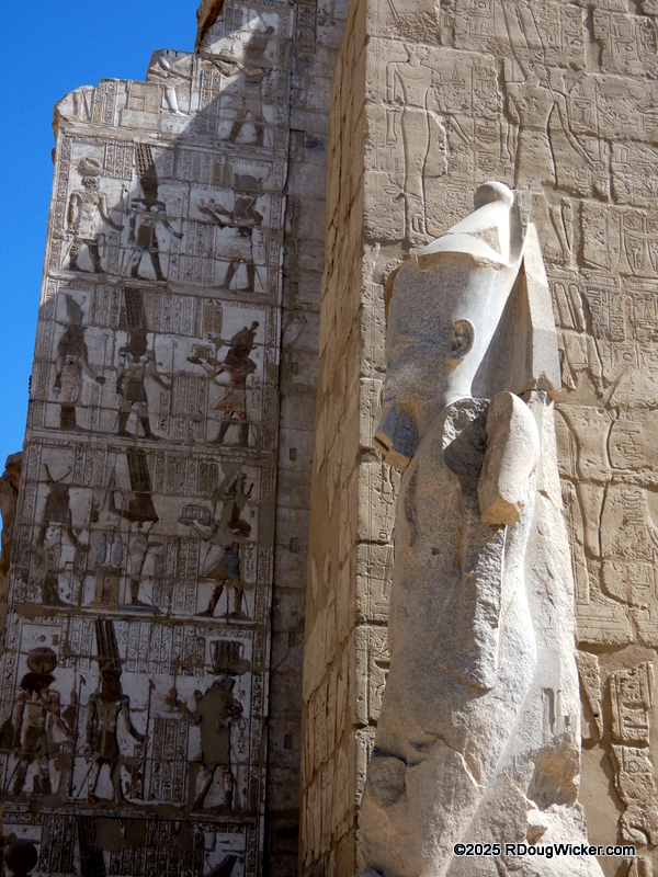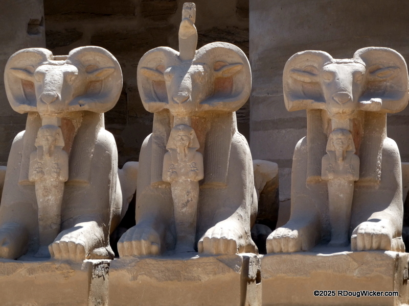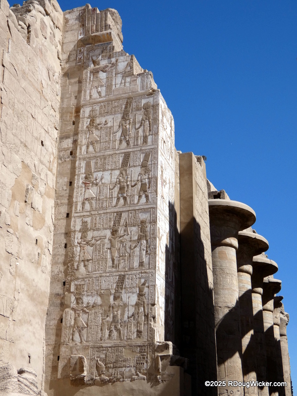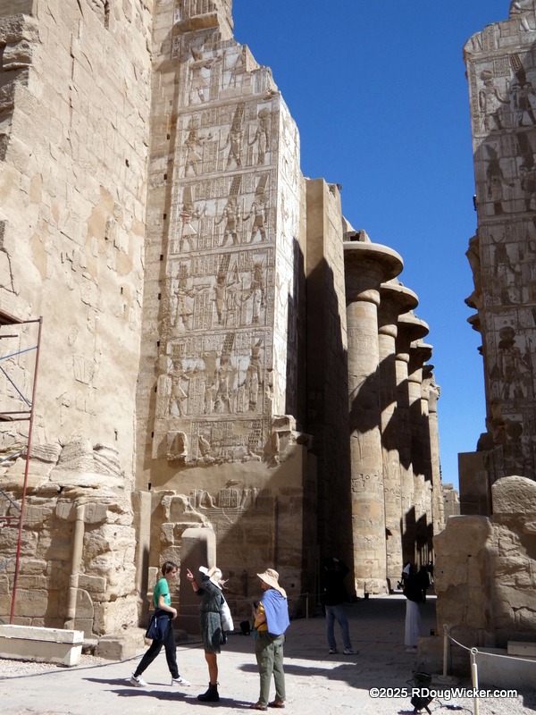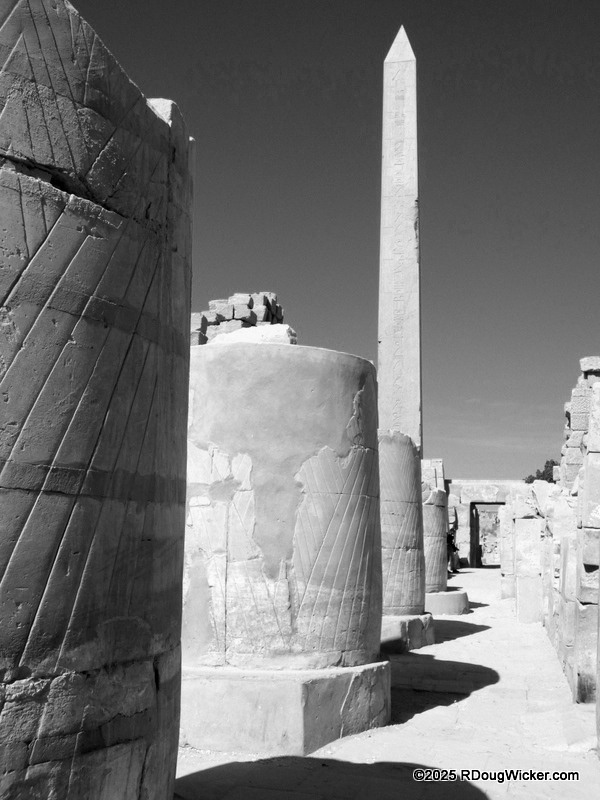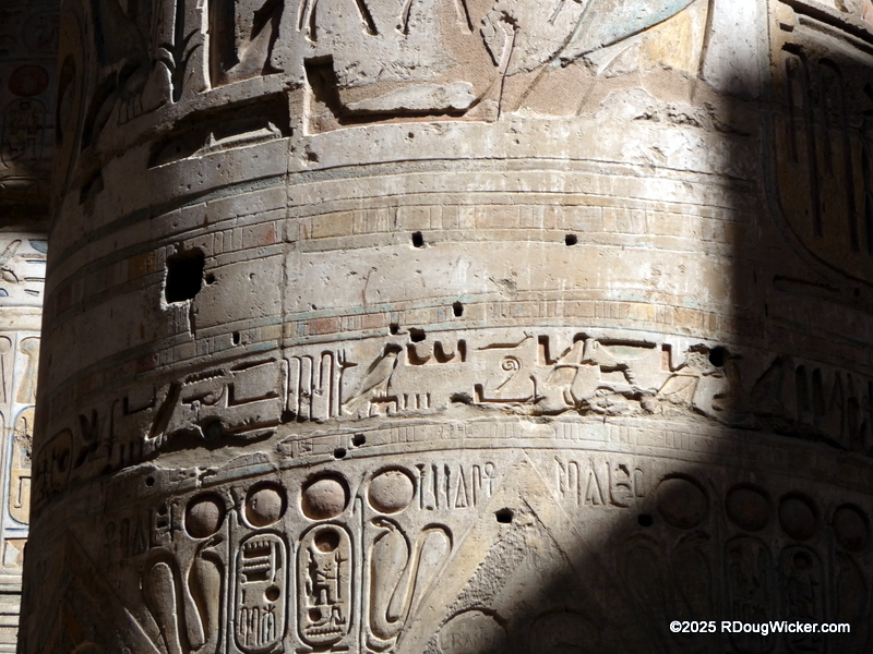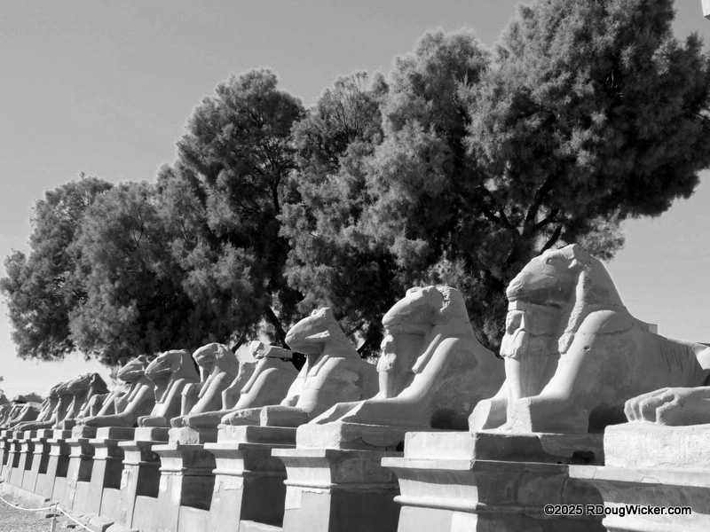 One of the things I most enjoyed about photographing Karnak was the way light and shadow played across the numerous columns, highlighting hieroglyphics and bas reliefs. Indeed, I anticipate that many of these photographs will convert very nicely into black & white, especially with some judicial use of color filtering before the conversion. And in case you’re wondering what I mean by that, here are some articles I wrote on the subject: Black & White Photography—It’s All in the Color!, Black & White Filtering After the Picture is Taken (and with FREE Software!) (alas, that “free software” is no longer supported by Google, but I’m sure you can find a substitute), and Color Filtering in Black & White Revisited. But enough with the photo tips for today. Let’s get back to Karnak.