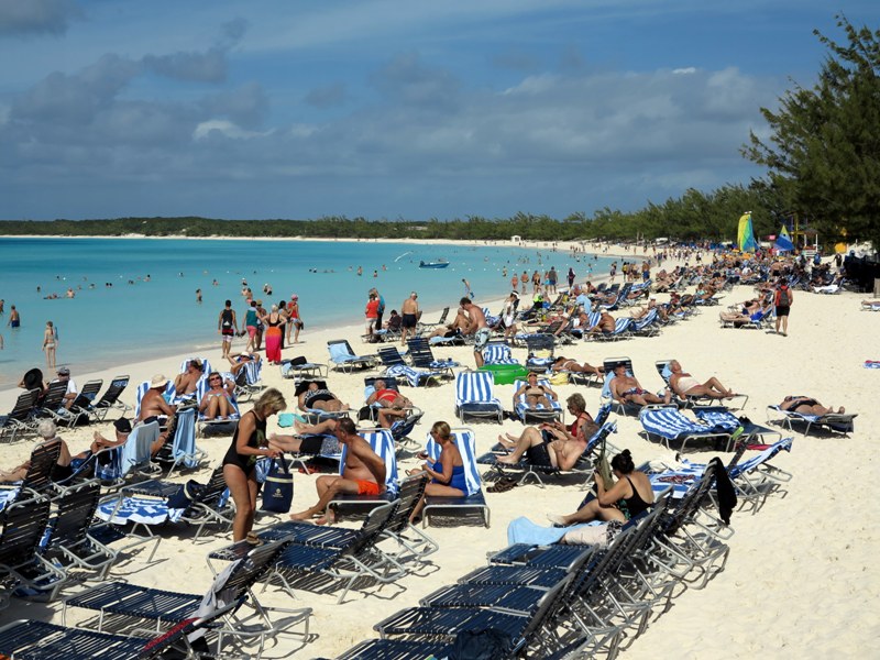 I got the feeling however that we were in the minority. After only five days at sea many aboard ship were expressing their desire to set foot on dry land. Others were desperately looking forward sun and fun. Fortunately, Holland America had just the cure for the transatlantic blues — some turquoise blue of their own known popularly as Half Moon Cay, but officially as Little San Salvador Island.