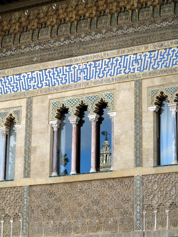 Seville resides in and is the capital city of the Andalusia portion of Spain, which incorporates the entire southernmost portion of the Iberian Peninsula east of Portugal. As such, Andalusia was the last stronghold of the Moors before they were finally displaced by the Reconquista (Reconquest) of Iberia. Thus, Moorish influences on architecture abound throughout the area, and the Alcázar holds the distinction of being among the finest remaining examples of what is known as the Mudéjar style.