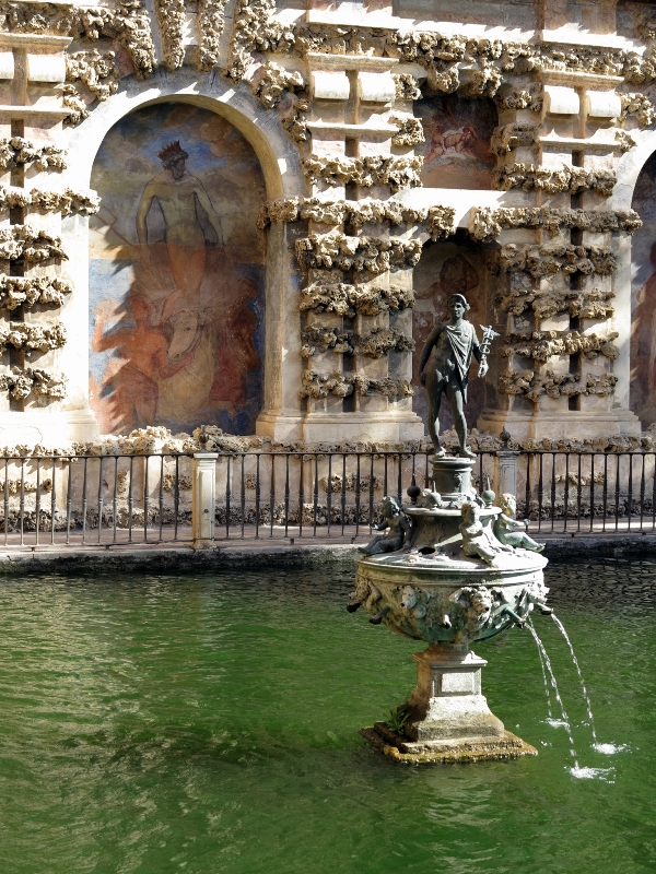 There are however other architectural styles in evidence at Alcázar as well. An example would be the statuary at the main pool in the garden (which you’ll see this coming Fun Photo Friday) and in the façades of some of the buildings encompassing the gardens and the wall overlooking the main pool.