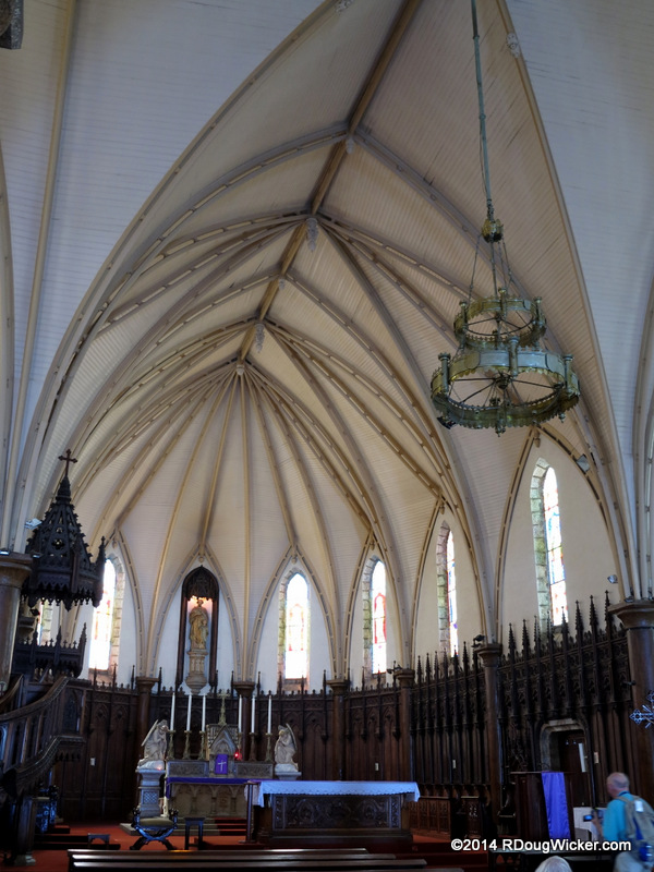 Now for some points of interest from our foot journey around Nouméa, capital city of New Caledonia.  One of those sights is Nouméa Saint Joseph Cathedral.  And while it may not look very opulent by European standards on the outside . . .