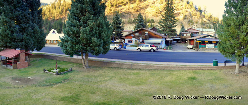 After a long drive from Trinity Site, through Santa Fe and Taos, and along the Enchanted Circle, we made Red River shortly before sunset.  One side of the main street was perfectly lighted by the low sun, as you can see here: