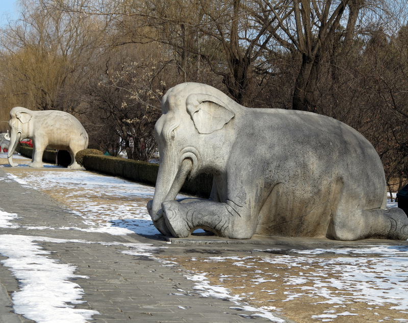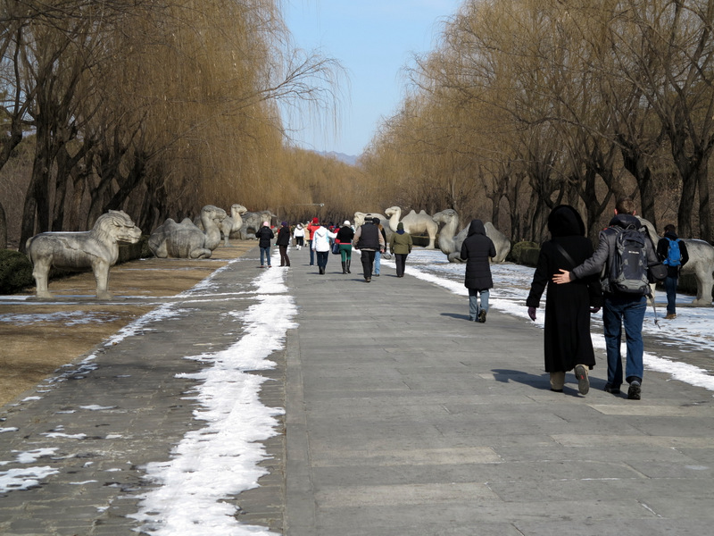 Also lining the walk are large statues of guardian animals.  As you walk past the animals you’ll find them going from a standing to a kneeling posture.  Chen “Jim” Mao told us that this symbolizes that even animals would bow in the presence of the emperor.