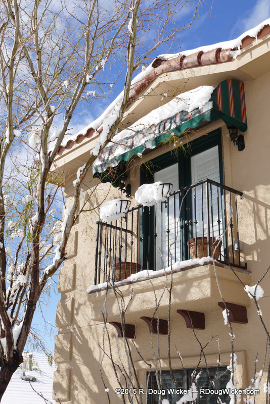 Our neighbors’ house got quite the dusting on the parapet of their beautiful Santa Fe-style home: