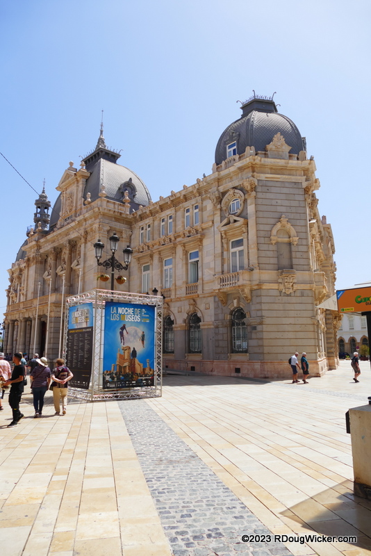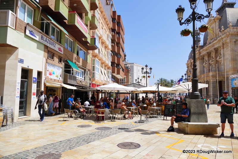 But first we must finish with Cartagena before we move on to Valencia and beyond, and today we’re still in Plaza Ayuntamiento headed south toward some serious naval memorials. After that, we head onto a hill overlooking Cartagena and which holds a Roman theater, so it’ll be a busy day.