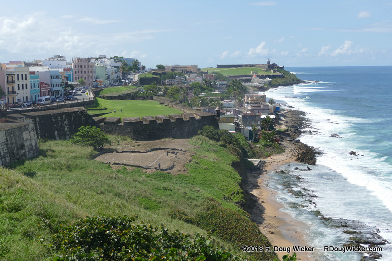 One week after setting sail from Tenerife, Canary Islands, the Norwegian Epic stopped off in San Juan, Puerto Rico. Since this trip was made in November, 2016, these images are, of course, before Hurricanes Irma and Maria. Upon disembarking, our first order of business was to stroll across the small island where the cruise port lies to the largest Spanish fortress ever built in the New World — Castillo San Cristóbal. Today this fortress takes up 27 of the 75 acres included in the San Juan National Historic Site. That 27 acres, by the way, is after the 1897 demolition of approximately one third of the structure to free up land needed for streets.