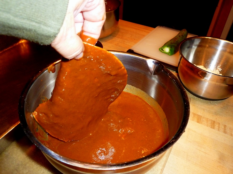 On Monday I presented my favorite recipe for red enchilada sauce, as well as my heretofore secret source for the perfect chili powder. Today, I’m going to show you what to do with it using that leftover turkey breast that’s been sitting in your freezer since shortly after Thanksgiving.
