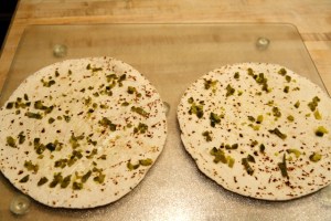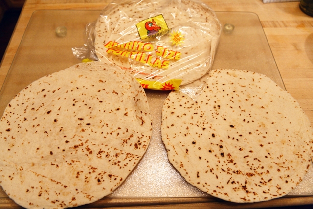 Preheat your oven to 400°.  While the oven heats, assemble your crisps.  Lay out the flour tortillas.