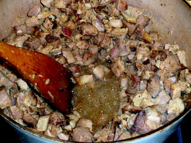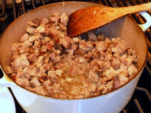 Sautée the pork cubes until you’ve rendered out much of the fat (about thirty to forty-five minutes).