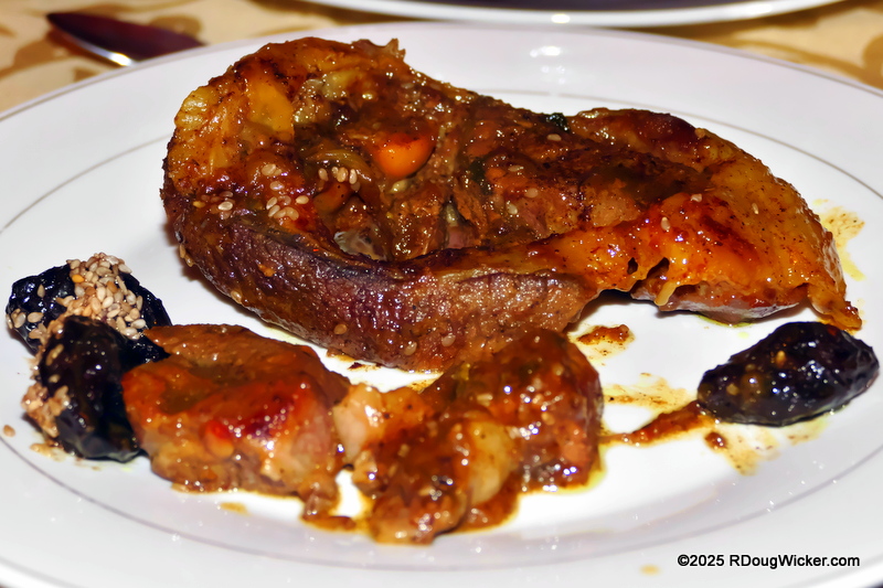 The “stew for two” side dish was delicious. It included prunes, which I don’t usually like, but not so in this case. Unfortunately, I cannot recall the meat: