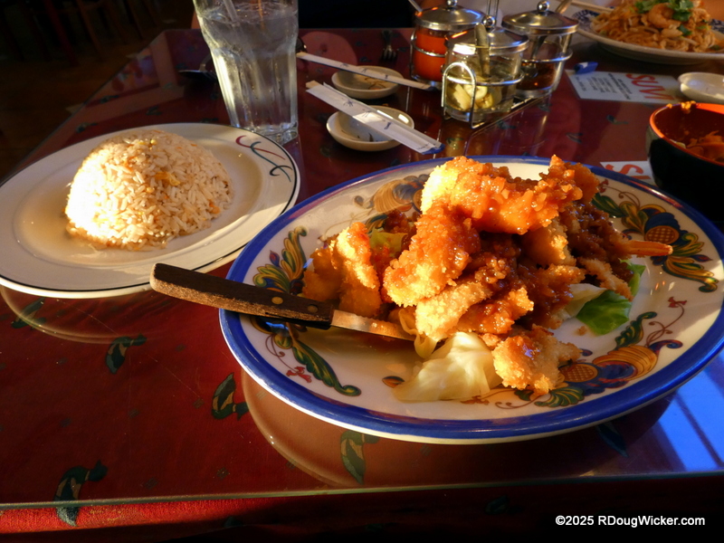 Ursula and I both adore good Thai food. The problem is that “good” is sometimes hard to find. But if you’re ever staying near Miami International Airport, I have just the place for you. It’s so good we ate there two days in a row, the second time with daughter Tracy after our visit to Coral Castle. Behold Suvi Thai & Sushi:
