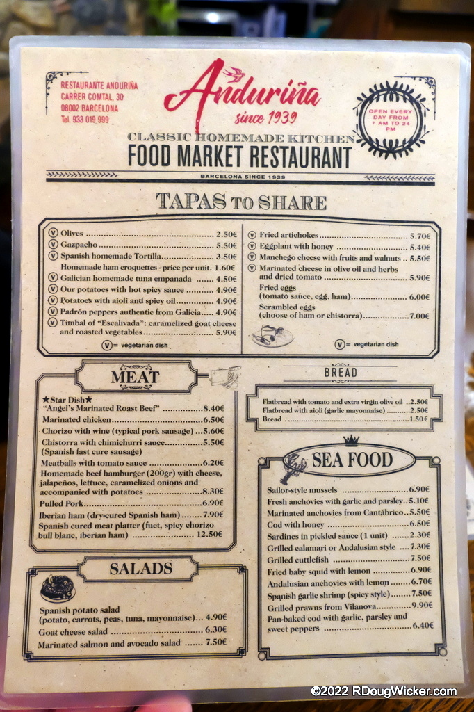 Now, if today’s restaurant review appears familiar, it’s because I’ve covered Restaurante Anduriña before in an article from when we visited this establishment on multiple occasions in October of 2021. I thought it might be fun to go back and see if the quality is holding up. Spoiler: It is. Here’s the article on our previous visit for comparison: Fun Food Friday — Restaurante Anduriña. If you compare the menu images from last year’s visit to the visit in May, you’ll find that inflation is indeed a worldwide post-pandemic phenomenon. But the prices didn’t go up all that badly.