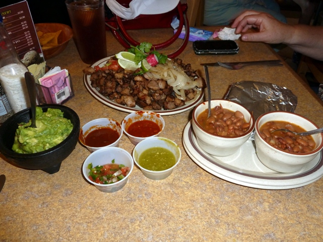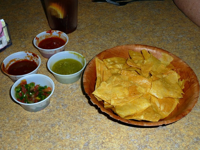 Having reached our destination, we were disappointed to learn that one of our favorite eating establishments had closed. Fortunately, there are some very delicious alternatives in and around Old Mesilla, so our backup plan became Andele’s for some pork tacos (a plate for two that would easily feed four if stretched with just one appetizer). We were not disappointed, and that one plate served us well with leftovers a couple of days later. The guacamole was made with rich, well-ripened avocado, and the salsa bar offered myriad choices to accompany our tacos. And then there are those great, freshly made corn tortillas served up in a hot, foil-wrapped stack that will singe your fingers if you’re not careful.
