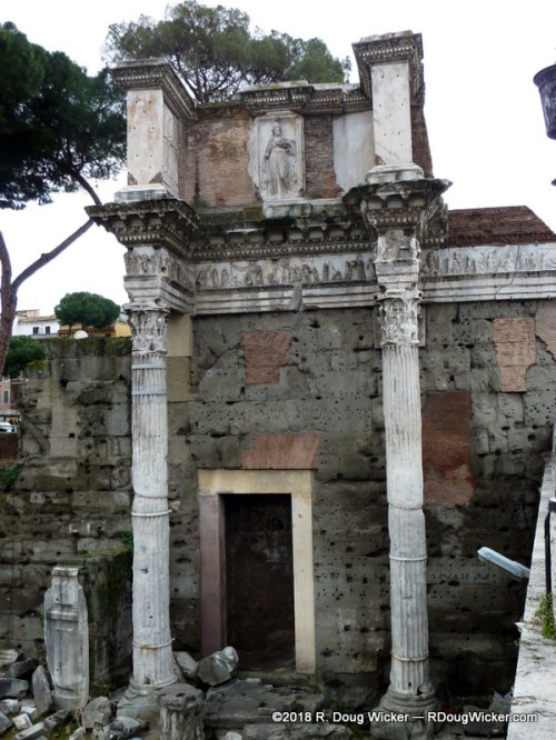 Below are images of more ancient Roman temples and other structures, including the photograph of the Temple of Antoninus and Faustina: