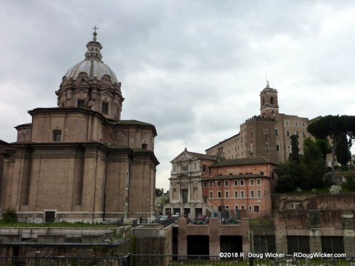 In this next photo of Santi Luca e Martina you can see to the right of the church a multi-story building with a tall tower. This is the Tabularium (BC 78), the office building that held the official records of the Roman Empire.