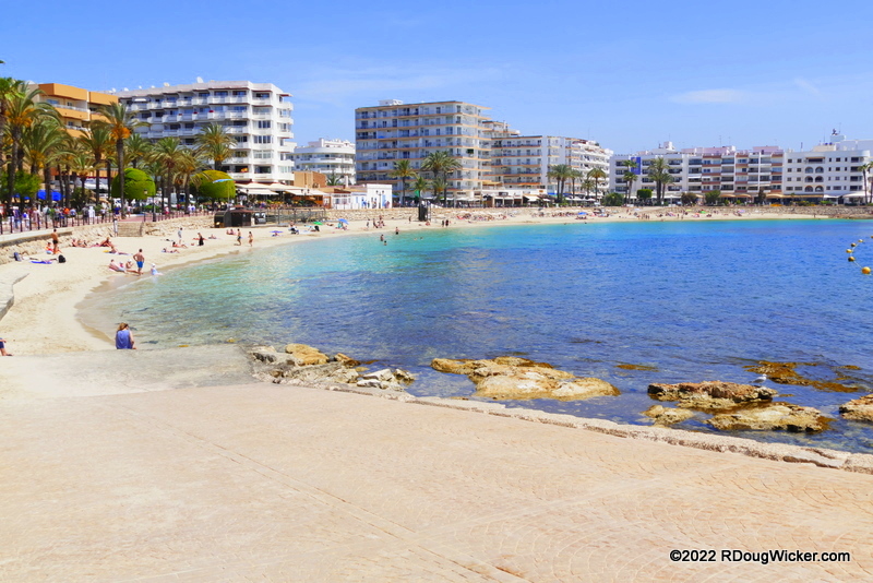 Santa Eulalia del Río is the third largest town on Ibiza, and it is the only town on the island that has running through it a stream, Riu de Santa Eulalia, flowing into the Mediterranean. As you can see, however, it’s the beach that appears to be the main draw: