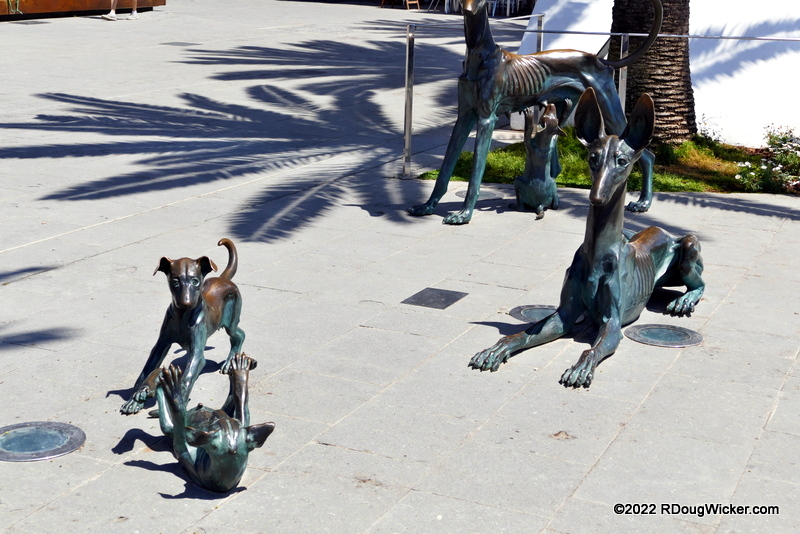 Did you know that Ibiza has its own native dog breed? It’s the Ibizan Podenco (Ibizan Hound), and it was originally bred to hunt small game, such as rabbits. On the boardwalk, just west of the southern end of Passeig de s’Alamera, you’ll find this playfully rambunctious Ibizan Podenco family: