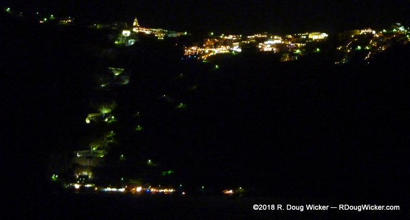 While not exactly ‘colorful’, I was able to capture this night scene of Santorini from MS Prinsendam just before we sailed away: