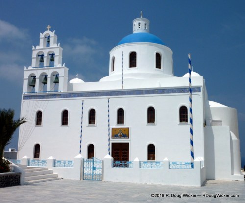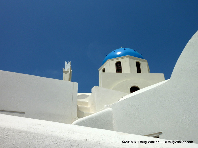 In the background you’ll note two other blue domes, and there are dozens more dotting the landscape. But it’s the image above that seems to draw most everyone. Here are more Santorini churches: